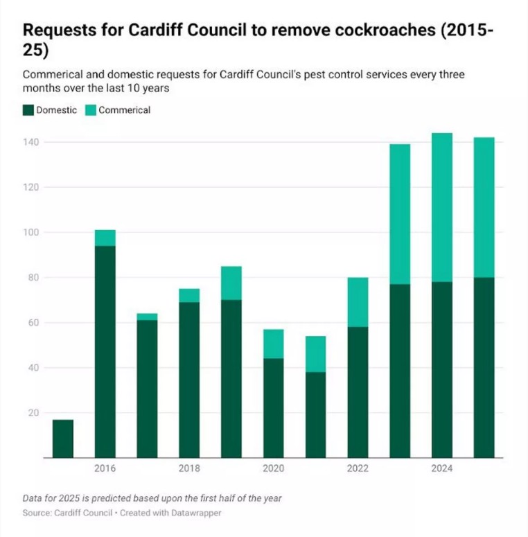 Another Cardiff-based pest controller, Werner Starbuck of Pest Control Cardiff, also said his company has seen a noticeable increase in cockroach call-outs over the past two years.