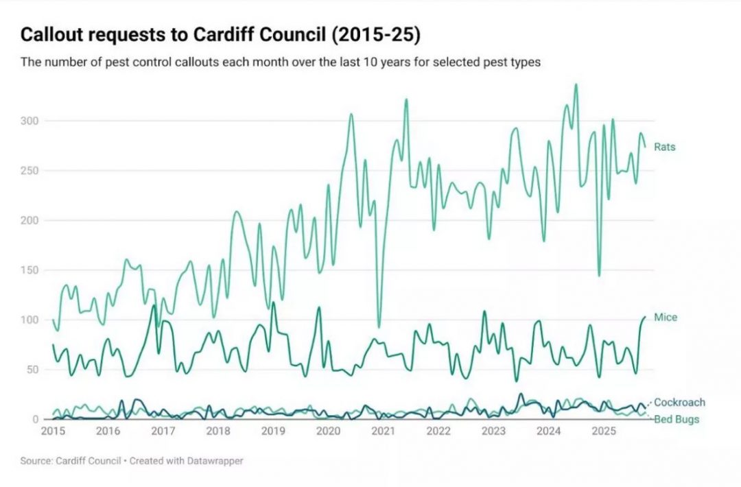 Figures from Cardiff Council show 144 requests were made to the council’s pest control services last year compared to just 80 two years earlier, an increase of 80 percent.